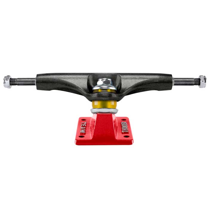 Excentes ejes de la marca americana THUNDER trucks, team model “No Mercy” de 148″, para las tablas de 8.1″-8.3″. Ejes perfectos para patinar la calle o skatepark. Con cualquier duda, llámanos a la tienda o envíanos un email, WhatsApp o instagram (@picnicskateshop). Te ayudaremos encantados. Altura: 6 cm Anchura: 21 cm Peso real de un eje: 367 gramos